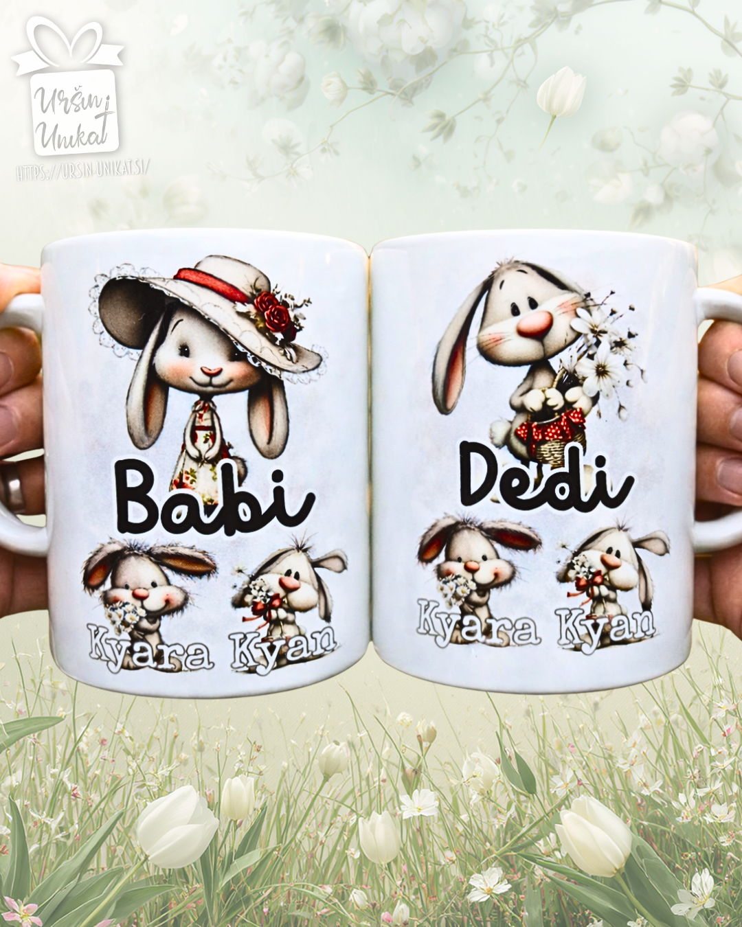 SKODELICA/FLAŠKA - Zajčki - BABI ali DEDI - darilo za Veliko Noč